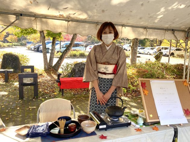 かん先生が保育士をしている氷川保育園にお手伝いに来てくれている佐藤華琳さんが抹茶かふぇを出店。